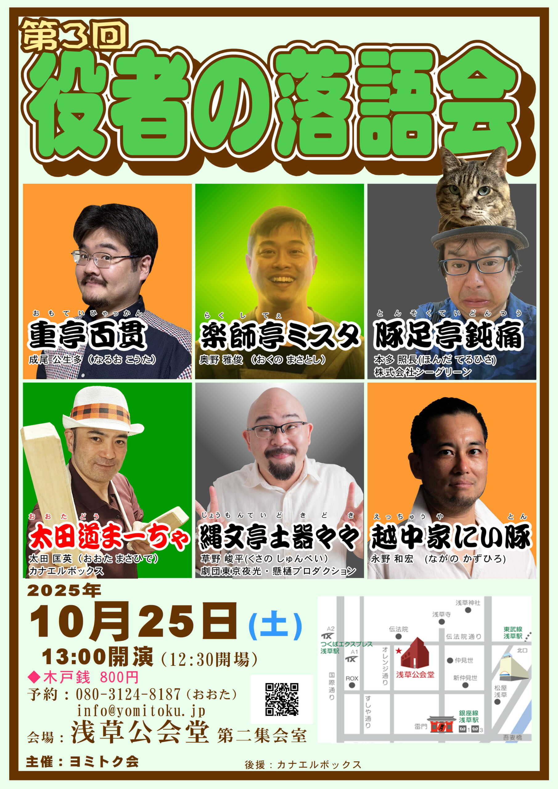 10/25(土)[東京都台東区]第3回 役者の落語会